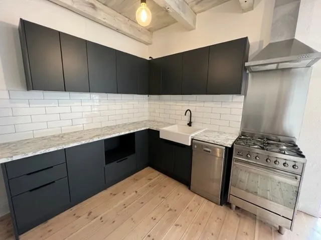 - Newly installed modern Kitchen with large Gas Stove and Dishwasher