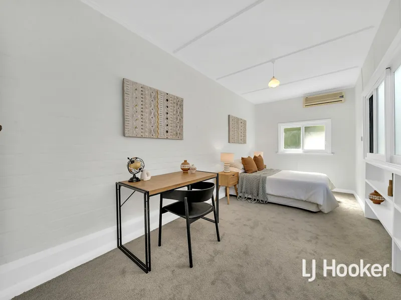 The home features a versatile floor plan with four well-sized bedrooms serviced by two bathrooms. A second entrance near Bedroom 3 makes it ideal for use as a home office or studio.