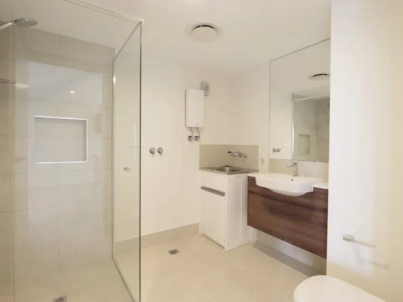 Upon entering the apartment, you are greeted with an open plan kitchen, living and dining space which flows seamlessly onto the private balcony. The modern kitchen features quality appliances, a large fridge space and plenty of storage space. The main bathroom follows off this space with a designated laundry space.