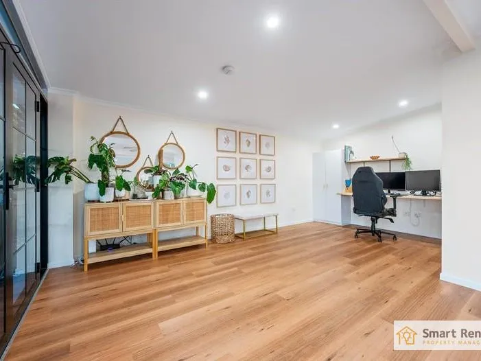At the heart of the home is the beautifully appointed kitchen, complete with stone benchtops, ample storage, breakfast bar seating and space for a plumbed refrigerator. Flowing seamlessly into the open living areas, the layout creates an inviting environment for both relaxed evenings and social gatherings. The timber-look flooring throughout adds durability while maintaining a warm, modern aesthetic.