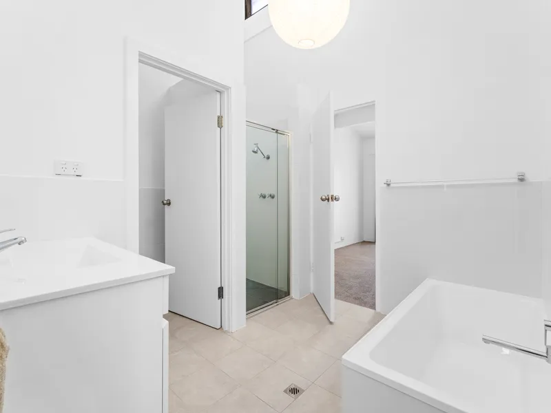 Outside, the private rear courtyard offers lawn, garden beds, and a garden shed, providing a great space to relax or entertain. Off-street parking is also available at the front of the property.
