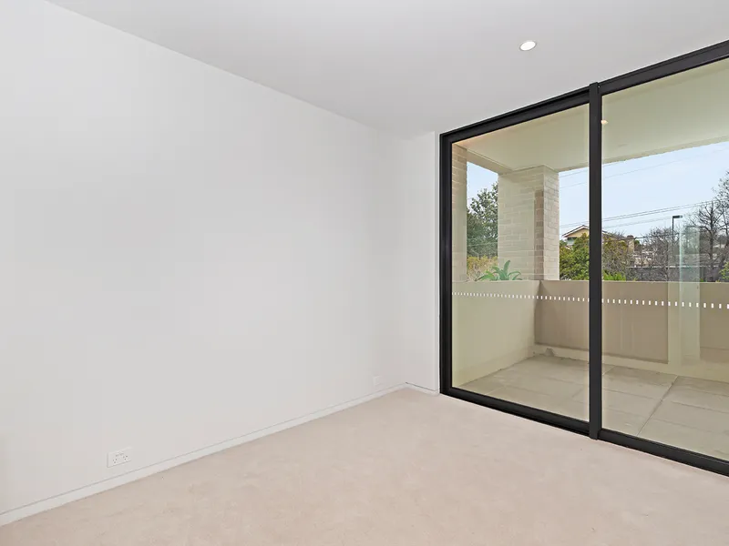 The apartment offers two spacious bedrooms with built-in robes, complemented by a separate study that is ideal for those working from home. Two stylish bathrooms, including an ensuite to the master bedroom, provide both comfort and convenience. The light-filled open plan living and dining area is enhanced by a contemporary kitchen featuring quality appliances and excellent storage, creating a welcoming space for everyday living and entertaining.