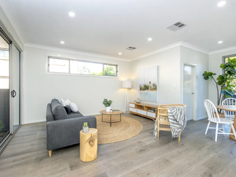 Designed for low-maintenance living, the home features a spacious open-plan layout that flows from the living and dining area into a sleek, modern kitchen. All four bedrooms include built-in robes, and with two stylish bathrooms and ducted air-conditioning throughout, comfort is assured for families or professional households alike. Outside, a large grassed yard offers room to relax or play, and the parking setup is a standout with plenty of secure and off-street options.