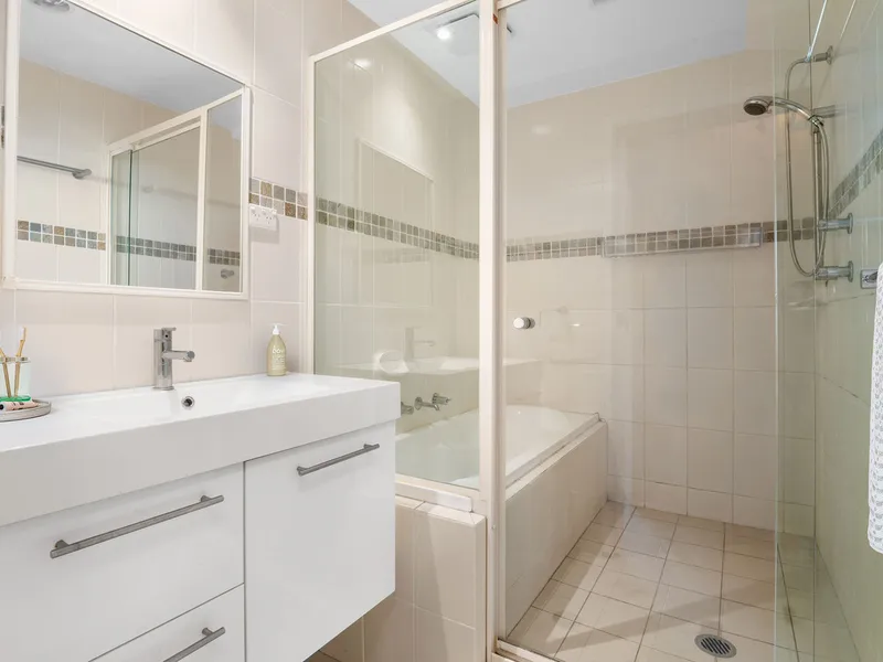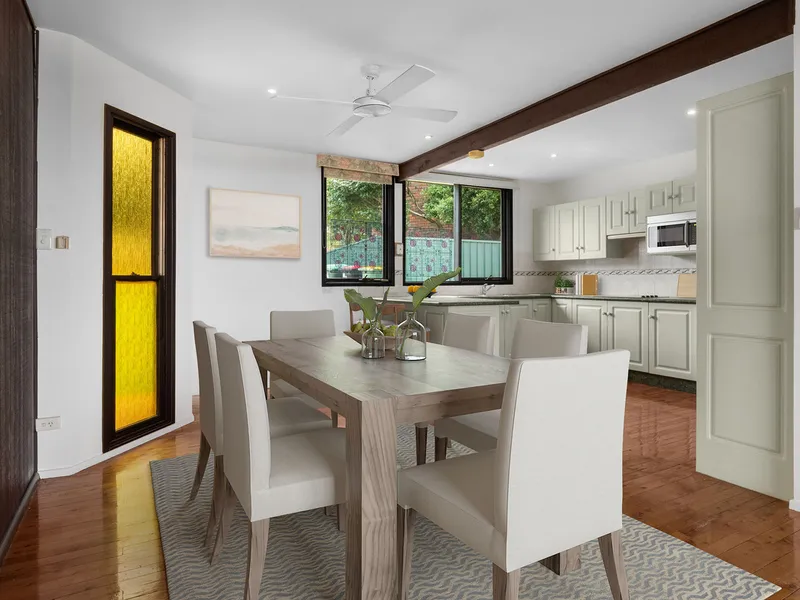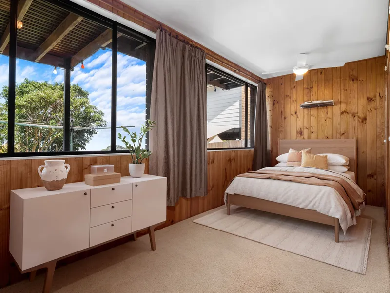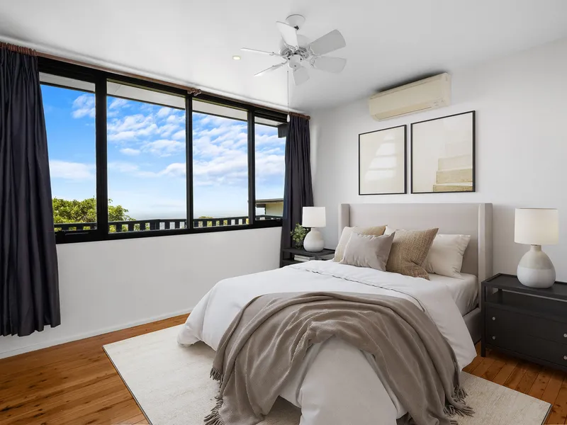 The upper level is completed with large main bedroom featuring split system reverse cycle ac, fan, built in and separate dressing room, as well as main bathroom and second bedroom.