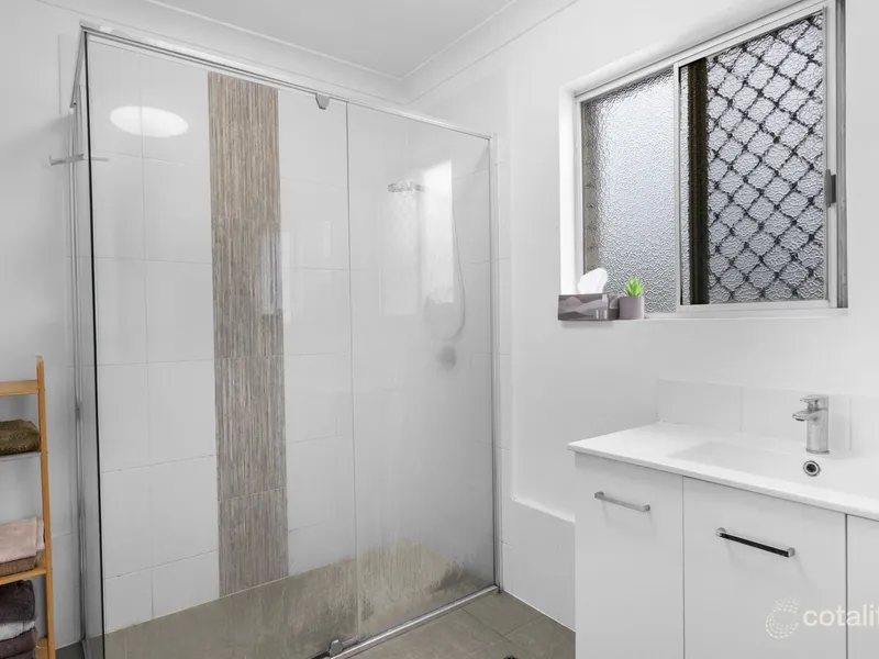 Two generous bedrooms upstairs, both with built-in robes and ceiling fans