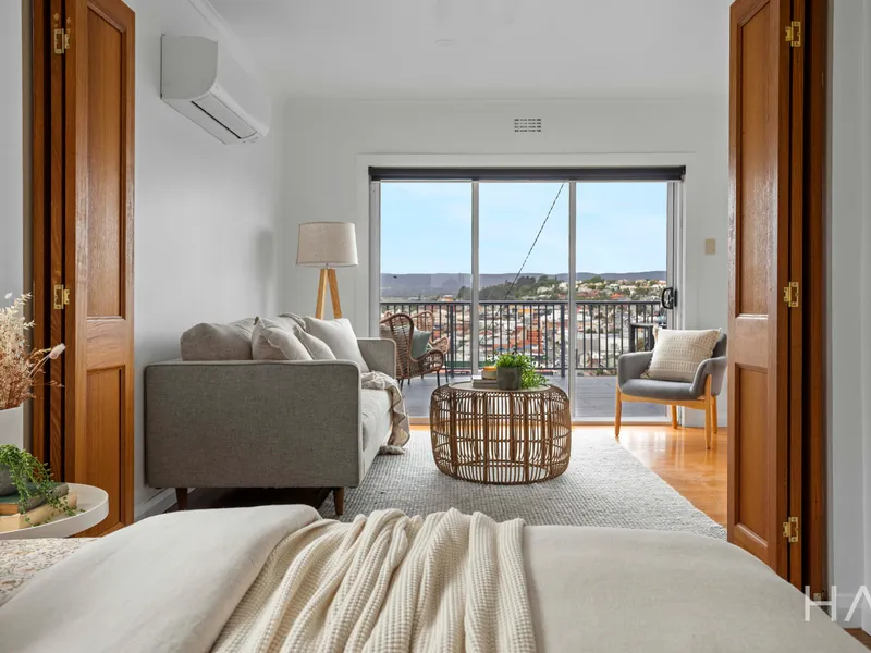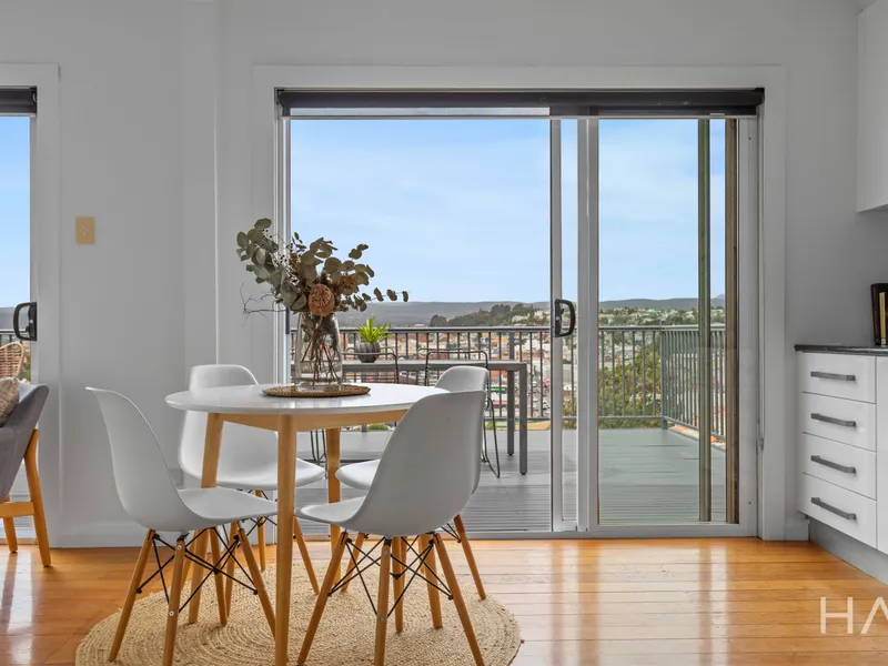 Welcome to 18 Bourke Street, a beautifully positioned home in the heart of Launceston offering an exceptional inner-city lifestyle. The light-filled living area is designed for both relaxation and entertaining, seamlessly flowing onto a spacious deck through large double doors. From here, you can enjoy stunning views across the city, the Tamar River and surrounding mountains. The upper level also features two generous bedrooms with built-in wardrobes, a modern bathroom with European laundry, and a sleek, well-equipped kitchen.