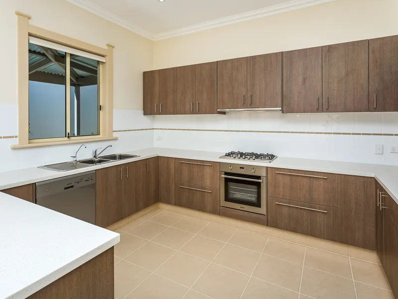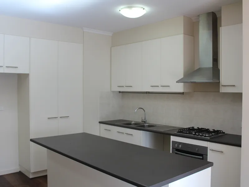 * Modern kitchen with gas cook-top, oven, dishwasher, and generous bench space