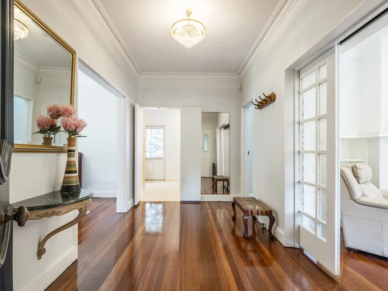 Walk to Rail & Village Offering outstanding flexibility and comfort, this impressive property features a spacious character home plus a near-new self-contained two-bedroom granny flat. Perfect for extended families seeking space and privacy, or those wanting additional accommodation for guests or a home office setup. Set on a generous 929sqm parcel in a sought-after east side avenue, the home is surrounded by private established gardens and located just 600m from the train station and local village shops. Combining timeless character with modern updates, the main residence provides generous living areas and multiple flexible spaces, while the contemporary granny flat delivers easy, low-maintenance living with its own private entry and outdoor area.