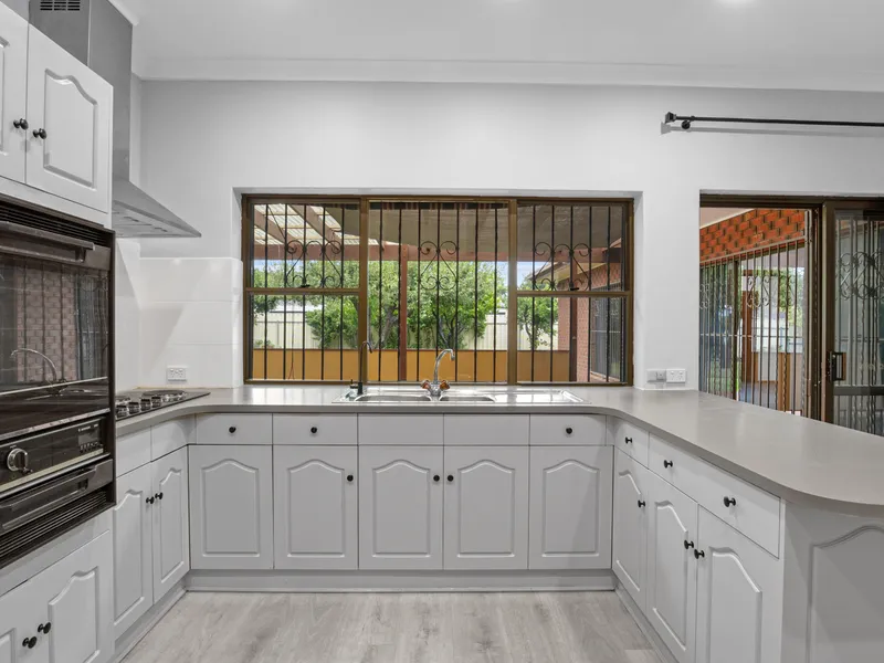 This large family home offers a versatile layout with plenty of space for comfortable living. Featuring two spacious living areas and an updated kitchen, the home is designed for both relaxation and entertaining. The separate dining room can also be utilised as a fifth bedroom or playroom, providing added flexibility. Outside, a large undercover entertaining area overlooks a spacious, lush lawn, perfect for kids to play and families to enjoy.
