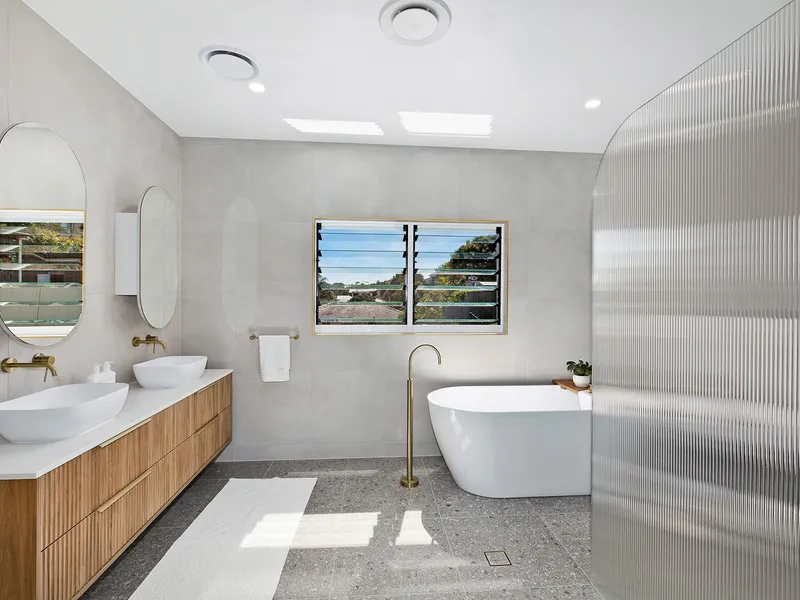 - Stunning bathroom with freestanding bath and double sinks for guests