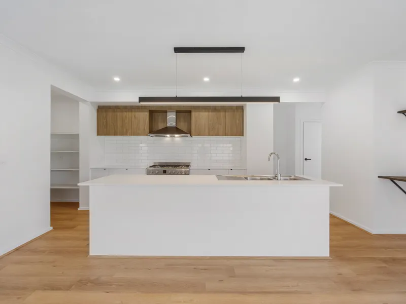 The kitchen is the heart of the home and is thoughtfully designed for both everyday living and entertaining. It features a large gas cooktop, dishwasher, a spacious walk-in pantry and a cleverly tucked away fridge cavity that keeps the space looking sleek and organised while still being highly practical.