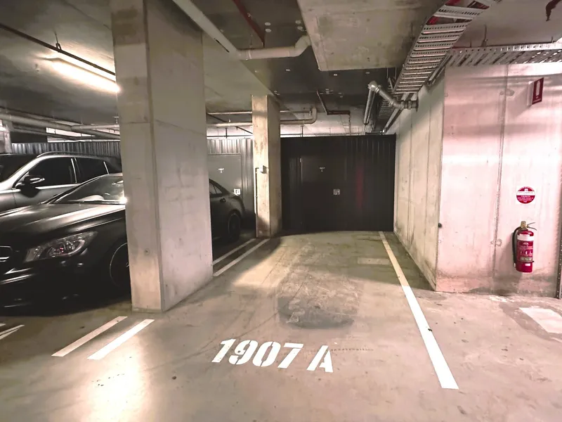 - 1 secure basement car space and 1 storage cage