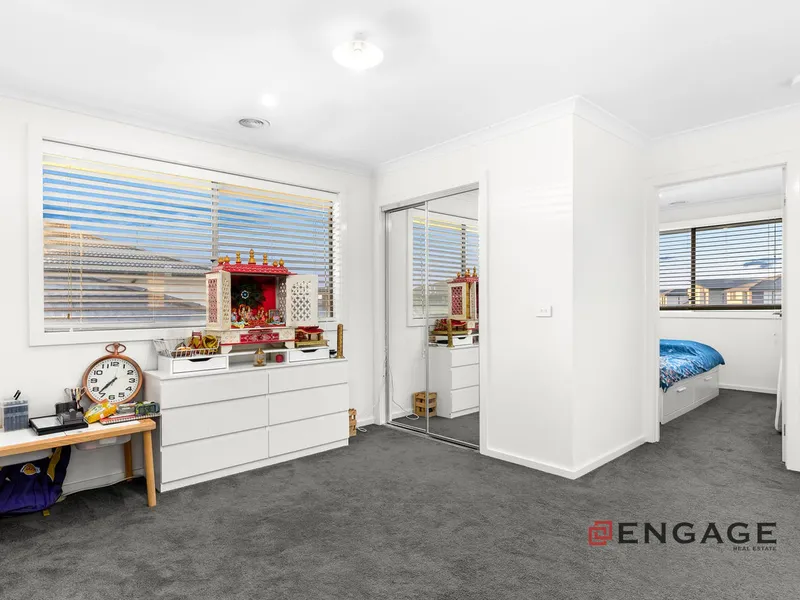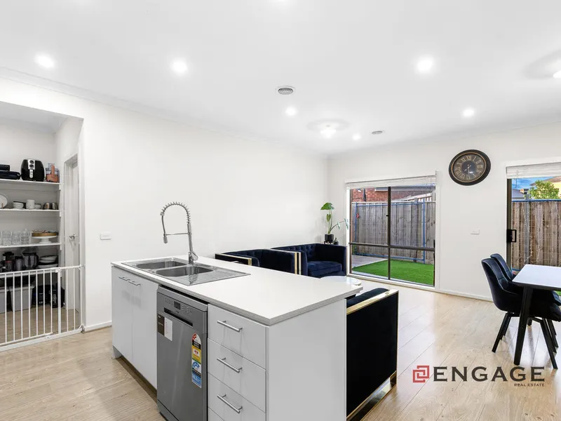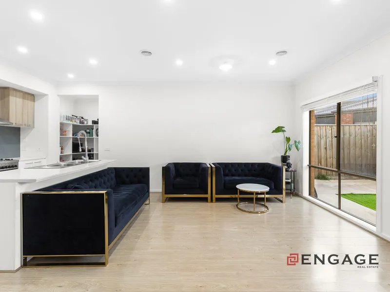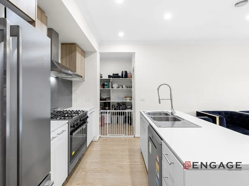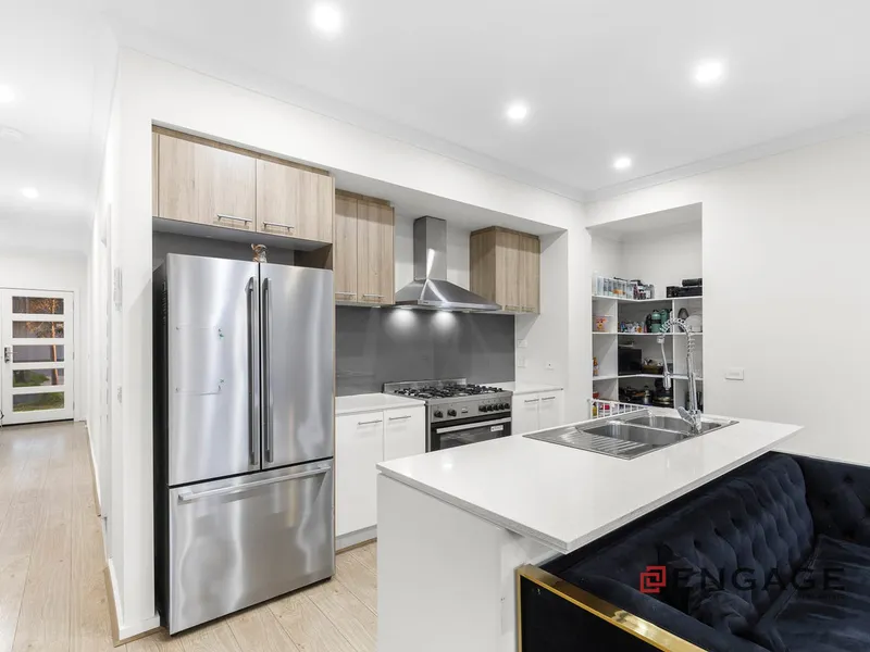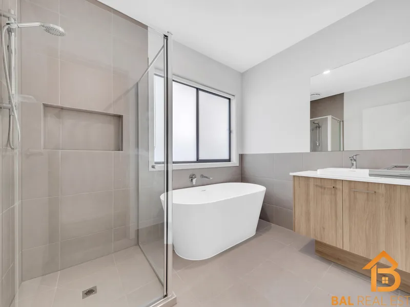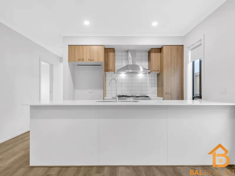 This two-story residence offers expansive living with two generous areas designed for relaxation and entertainment. The sleek, modern kitchen is a chef's delight, featuring high-quality appliances and a large island bench for casual dining and meal preparation. Upstairs, the luxurious master suite boasts a private walk-in closet and ensuite, while three additional bedrooms, equipped with built-in robes, ensure ample space for family living. Two stylish bathrooms plus a convenient powder room address the demands of a bustling household, enhancing comfort and practicality throughout. Outside, a low-maintenance backyard provides the perfect retreat for outdoor activities and gatherings, complemented by a double garage offering secure parking and extra storage.