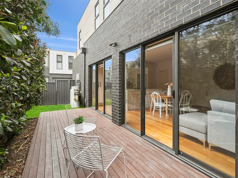 Designed with modern living in mind, the home is bathed in natural light, with a practical and flexible floorplan ideal for busy professionals or those seeking low-maintenance comfort. The welcoming entry leads to a spacious, sun-filled lounge that seamlessly connects to a sleek gallery-style kitchen, complete with gas cooking, electric oven and dishwasher. Both living zones enjoy direct access to the private, secure rear yard-perfect for relaxing or entertaining.