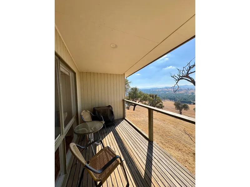 A semi-enclosed deck with BBQ provides the perfect space to enjoy outdoor dining or relax while taking in sweeping mountain views across the Victorian High Country.