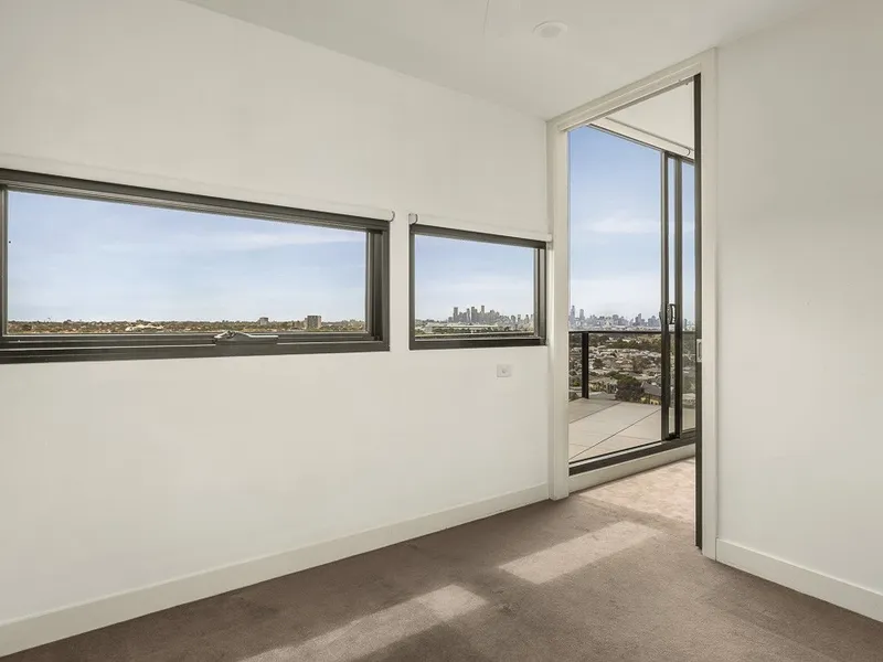 Set high above the river within the sought after Boulevard Apartments, this beautifully appointed two bedroom residence captures sweeping, uninterrupted views across the Maribyrnong River, the heritage listed Jack’s Magazine, the city skyline and out to the distant Dandenong Ranges. Expansive windows invite an abundance of natural light into the open plan living and dining domain, which flows effortlessly onto a private balcony, creating the perfect vantage point to relax or entertain while enjoying the ever changing outlook.