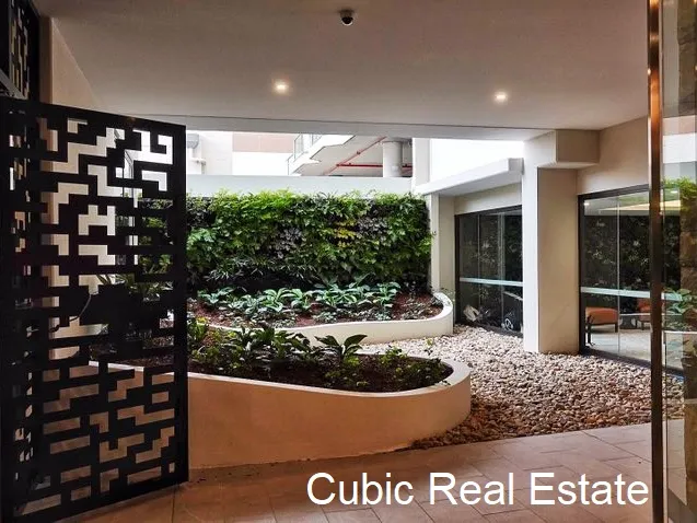 This secure building also features a rooftop garden and BBQ area.