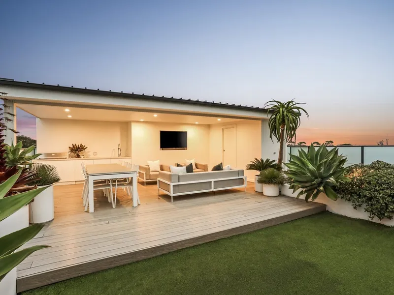 Set high above the vibrant heart of Maroubra, this striking sub-penthouse apartment delivers an extraordinary lifestyle with panoramic outlooks, designer finishes, and a private rooftop terrace made for unforgettable entertaining. Boasting house-like proportions and multiple outdoor zones, the residence offers a rare fusion of indoor comfort and alfresco luxury across a thoughtfully designed floorplan.Whether you're hosting sunset cocktails, summer barbecues, or simply relaxing in privacy, the massive rooftop is the hero of this home.