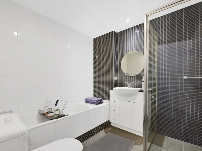 This property comprises two bedrooms with built-in wardrobes, with the main bedroom featuring an en-suite. Additional features modern kitchen with dishwasher, main bathroom with shower and bathtub, an open plan living and dining area that opens onto a generously sized and sun-drenched terrace, as well as an internal laundry.