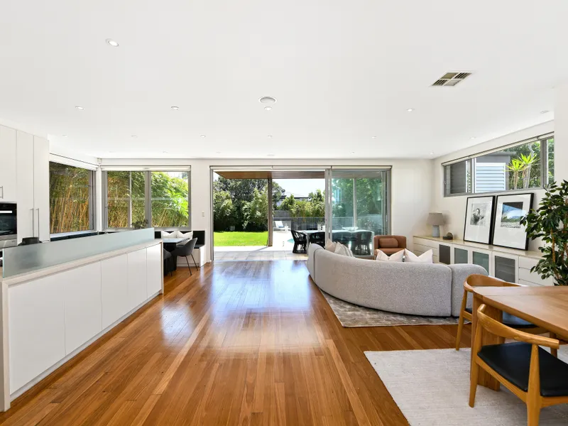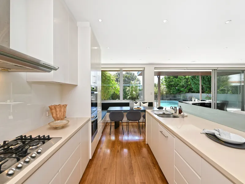 A designer home incorporating Feng Shui design principles, this captivating seaside residence offers an open and airy ambience with walls of glass and a lofty double height entry foyer that allow maximum connection to nature. In a coveted pocket just up from the idyllic Mahon Pool and The Grumpy Baker, the home captures stunning views to the sea and Malabar Headland National Park. Lush bamboo gardens envelop the home, with a large sun splashed swimming pool as the centrepiece for laidback coastal living. Organic tones feature throughout the interiors, with the home incorporating Travertine terraces, a floating timber stairway and glass louvres for maximum cross flow breeze. Adjoin the coastal walk at the end of the street, with easy links to Maroubra Beach, surf clubs and Maroubra's vibrant beachside dining scene.