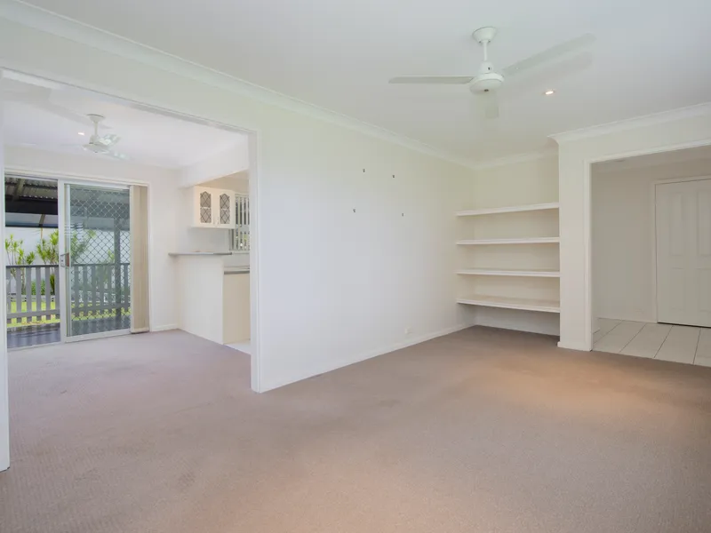Inside, the home features three bedrooms each with built-ins and ceiling fans, a central bathroom with separate toilet, and a functional layout designed for easy everyday living. The light-filled living area creates a warm and welcoming space to relax, while the adjoining kitchen provides ample storage and preparation space for home cooking.
