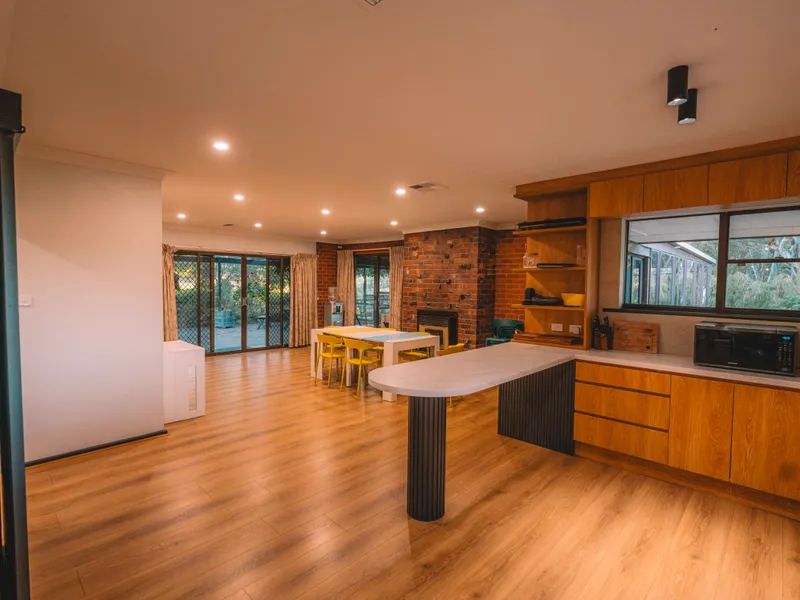 •Spacious, renovated kitchen and dining area with walk-in pantry, electric oven and cooktop, split-system air conditioning, and generous storage