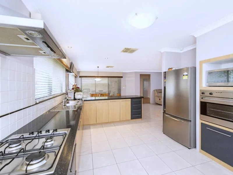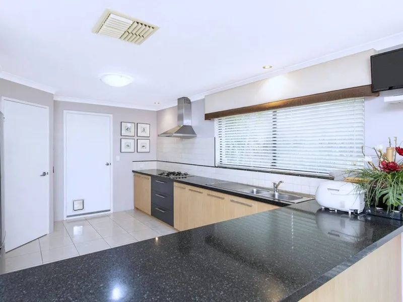 The modern kitchen is the heart of the home, featuring sleek granite benchtops and plenty of storage, while ducted air conditioning ensures year-round comfort. Outside, enjoy weekends and summer evenings in your spacious outdoor entertaining area, complemented by low-maintenance gardens so you can spend more time relaxing and less time gardening.