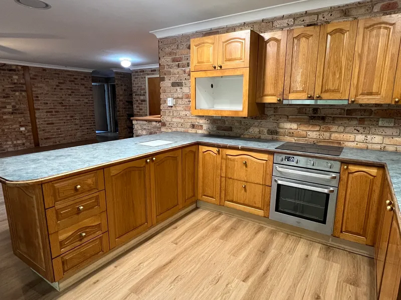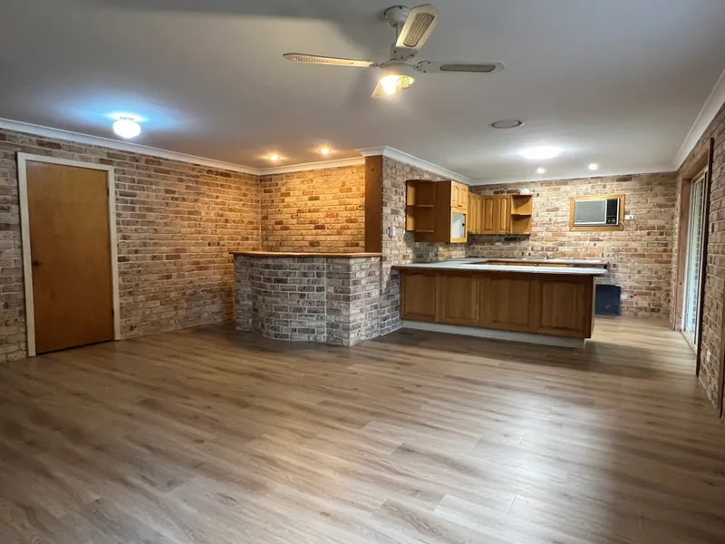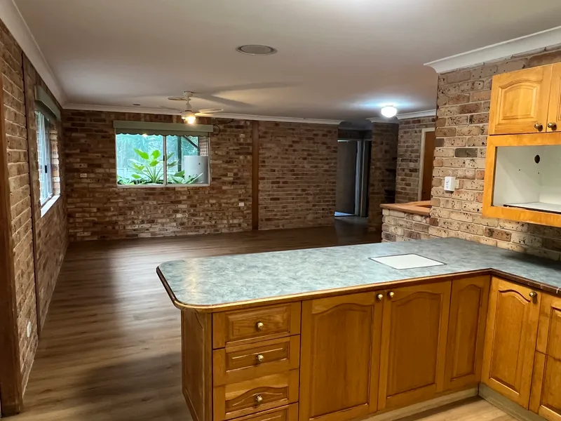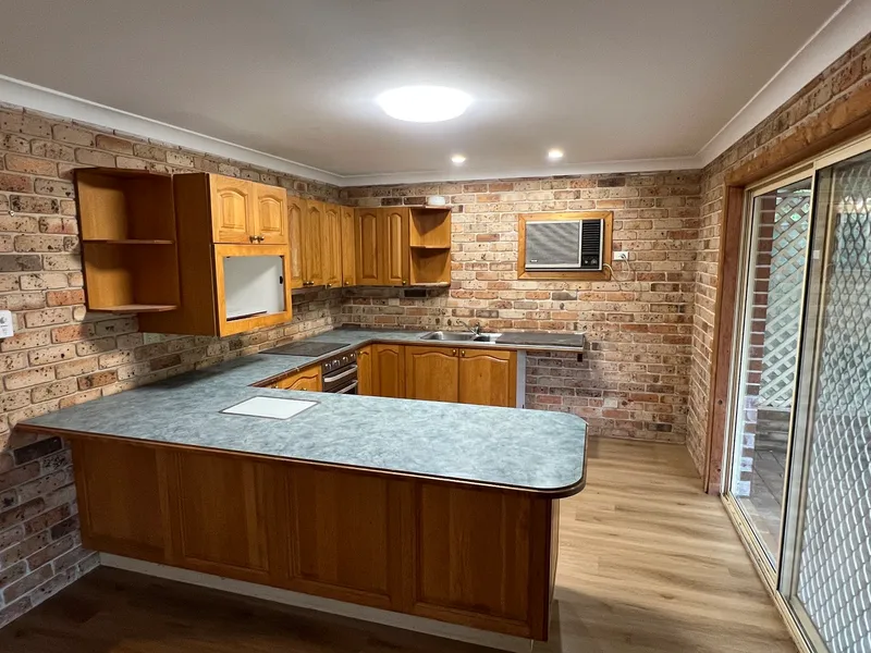 - Timber kitchen with air conditioner & glass sliding door to back yard
