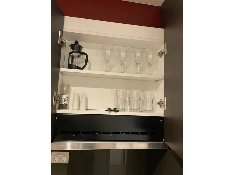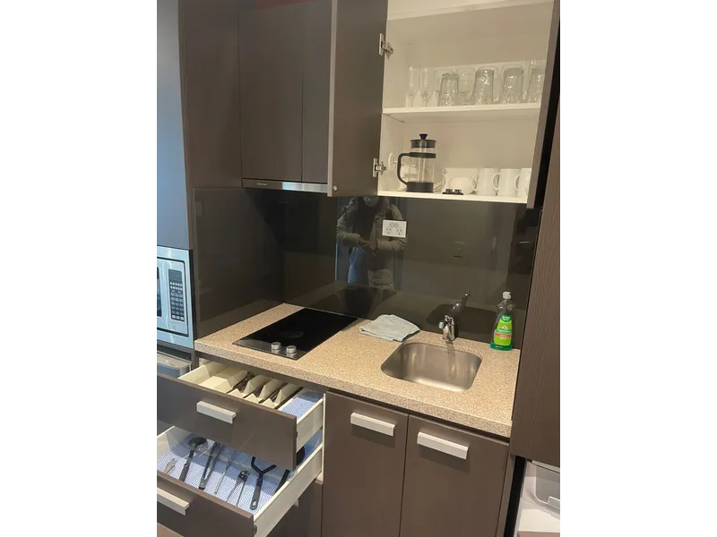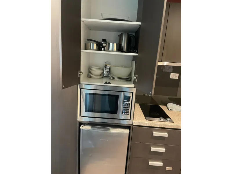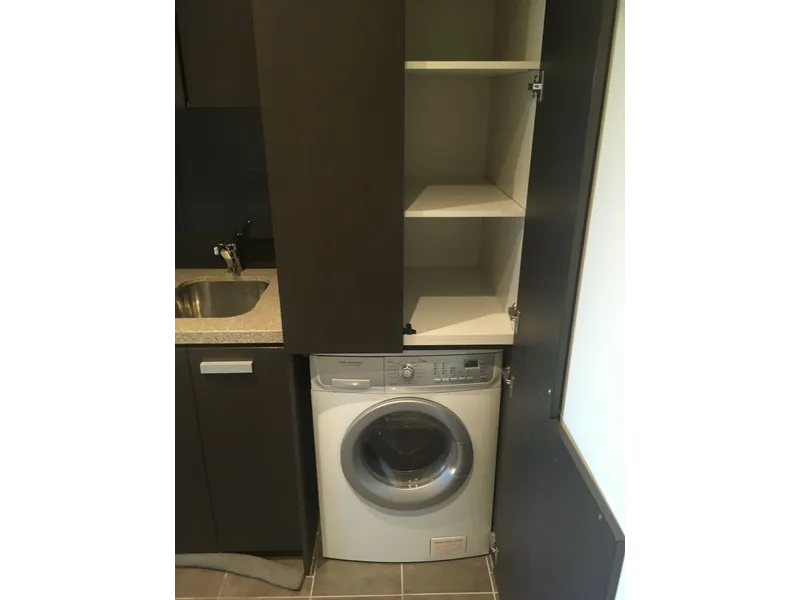 Furnished: Queen size bed, Heater, Air Conditioner, Stereo with digital radio , DVD & iPod dock. Wardrobes, Desk, Chairs, modern kitchen with Fridge, toaster, Kettle, Microwave, cook top, washing machines and a dishwasher. An on site is a gymnasium , sauna and rooftop BBQ terrace.
