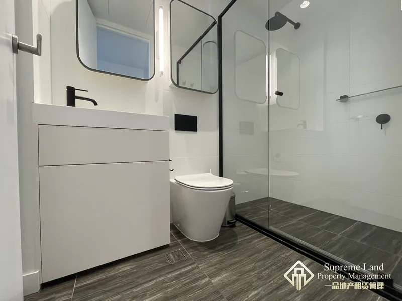 ? Elegant Bathroom: Designed with a contemporary aesthetic and high-quality finishes.