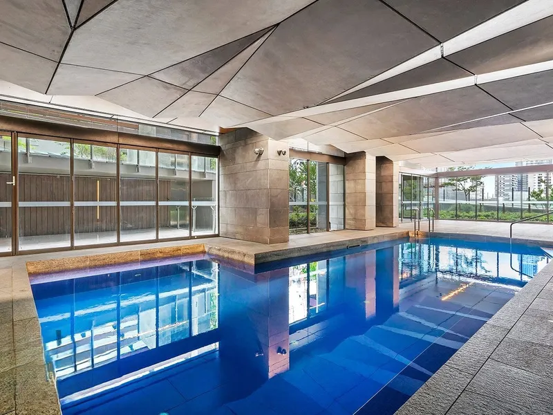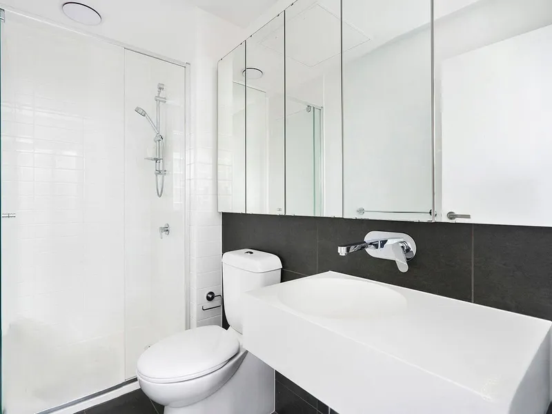 This modern two-bedroom residence features sleek timber flooring, a contemporary neutral palette, premium European appliances, stone benchtops, and soft carpeted bedrooms. A private recessed balcony showcases stunning city views, while high-speed fibre-optic connectivity ensures seamless modern living.