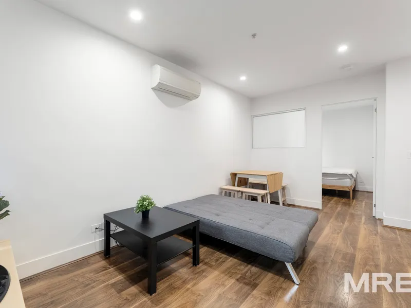 This fully furnished two-bedroom apartment offers stylish, low-maintenance living in the heart of Melbournes CBD. The light-filled open-plan living and dining area extends to a private balcony with elevated city views.