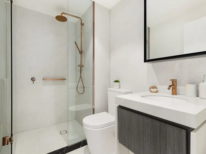 Elevated above its rivals by expert design, premium finishes, extensive floor to ceiling outlooks and lavish resident amenities, this 2-bedroom, 2-bathroom corner apartment provides the ultimate in easy, lock up and leave living with virtually every amenity at its doorstep. Accommodation features two spacious bedrooms with excellent BIRs, one served by an adjoining bathroom, the main with twin BIRs and designer ensuite, bright open plan living/dining featuring a chic Miele appointed kitchen with marble look stone benchtops and soft gold detailing, floor to ceiling surrounding glazing and an undercover balcony with fitted bar and tree top parkland views.