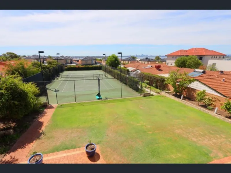 This large executive two-story home sits on a rare 2023m2 estate with exceptional indoor and outdoor features. This charming character family home has everything you would need and more including a sensational floodlit tennis court. Ideally located in an elevated position in the pristine suburb of Melville and showcasing some of the best River, City and Hill views Melville has to offer. Situated close to all amenities including Melville Reserve, football and tennis grounds, the Melville Recreation Center, and Hawaiian's Melville Shopping Center. Point Walter Golf Course, nature reserves and the Swan River are just a short drive. The location has plenty of health and social lifestyle benefits and you'll enjoy the numerous cafes, restaurants, small bars, and fresh produce providers nearby. Features include: - 4 spacious bedrooms all with robes - 3 large bathrooms - Formal lounge with feature fireplace and bay window - Formal dining accessed off the kitchen - Kitchen with marble benchtops, dishwasher, walk-in pantry, ample storage, gas cooktop and shoppers' entrance - Spacious informal living room with built-in bar - Informal meals area and breakfast bar - Under stairwell storage - Large Laundry with drying courtyard - Third living area with amazing views over the city and river - Huge balcony perfect as a second outdoor entertaining area - Air conditioning throughout - Security alarm system - Polished wooden floorboards & high ceilings throughout - Paved alfresco area overlooking lush, landscaped gardens with reticulation - Workshop - Double automatic garage - Additional off-street parking - Gated side access for trailers, boats and caravans - Full-size tennis court with floodlighting For more information or to arrange a private inspection, please call 0424400364