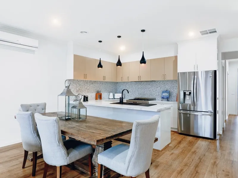 From the moment you enter, you'll be greeted by a light-filled interior that flows effortlessly through the open-plan layout. The contemporary kitchen, complete with quality fittings and generous bench space, connects seamlessly to the dining and living areas - creating an inviting hub for family gatherings or relaxed evenings.