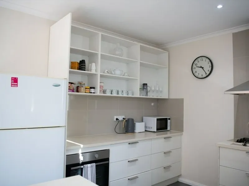 Spacious and comfortable. Queen beds in 3 rooms, double in 1 bedroom. Each bedroom has walk in robes, lots of storage space, particularly in the 4 banks for storage in the hallway, plenty of drawers, shelving and bench space in the kitchen and laundry.