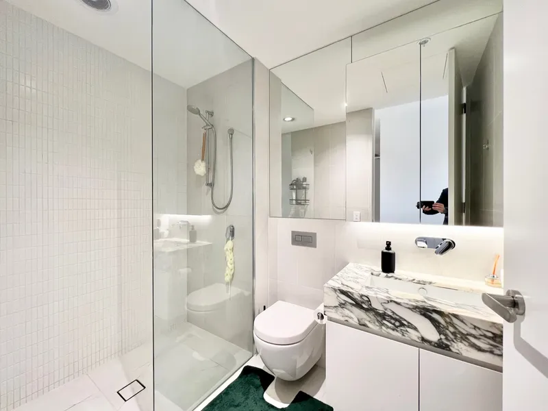 Situated in the heart of one of Melbourne’s finest tree-lined suburbs, residence 207 offers a boutique park side lifestyle and convenience in spades. Enter into a generous open plan living, dining and kitchen, adorned with rich floorboards and natural light. The sleek kitchen offers a large marble island bench, a full suite of Miele appliances, integrated fridge and ample storage. The lavish main bedroom flows through to a marble accented ensuite and mirrored built in robes – accompanied by a second bedroom, European laundry and stylish main bathroom. Built for owner-occupiers, added luxuries include central heating and cooling, 2-secure car spaces, large private storeroom and audio-video intercom entry.