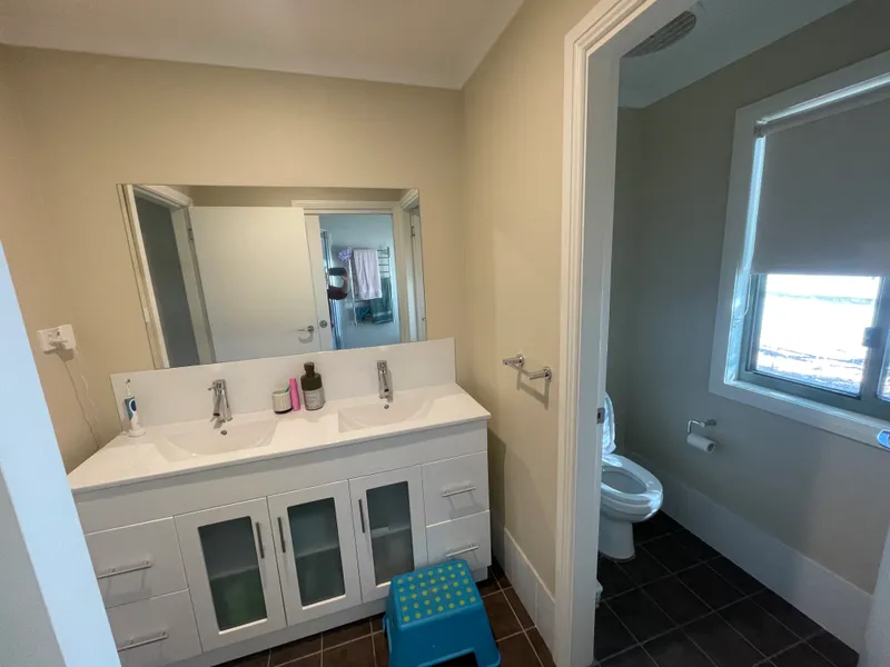 This property has 4 bedrooms, 3 bathrooms and 4 toilets. Each bedroom has an electric wall heater and built in wardrobe. Two bedrooms have an ensuite. Currently these 2 rooms have a queen bed while the other 2 rooms have one single bed in each. We might be able to accomodate a different bedding arrangement if need be.