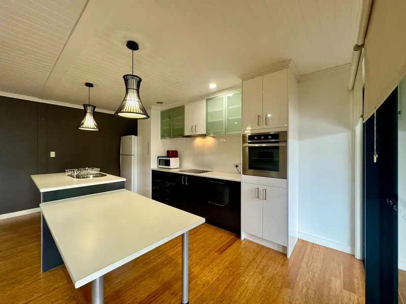 - Open plan living and dining areas which flow seamlessly through double glass sliding doors out to the wonderful undercover outdoor timber deck