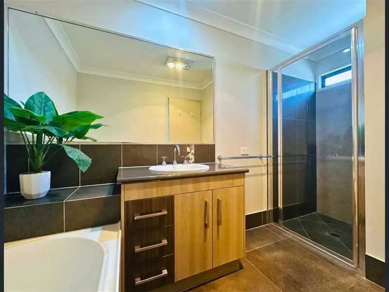 The upper level serves as a private retreat, offering two generous bedrooms with built-ins, a dedicated study nook for remote work, and a stylish ensuite. With full air-conditioning and a private alfresco courtyard, this home offers year-round comfort and a quiet sanctuary in a highly sought-after, family-friendly complex.