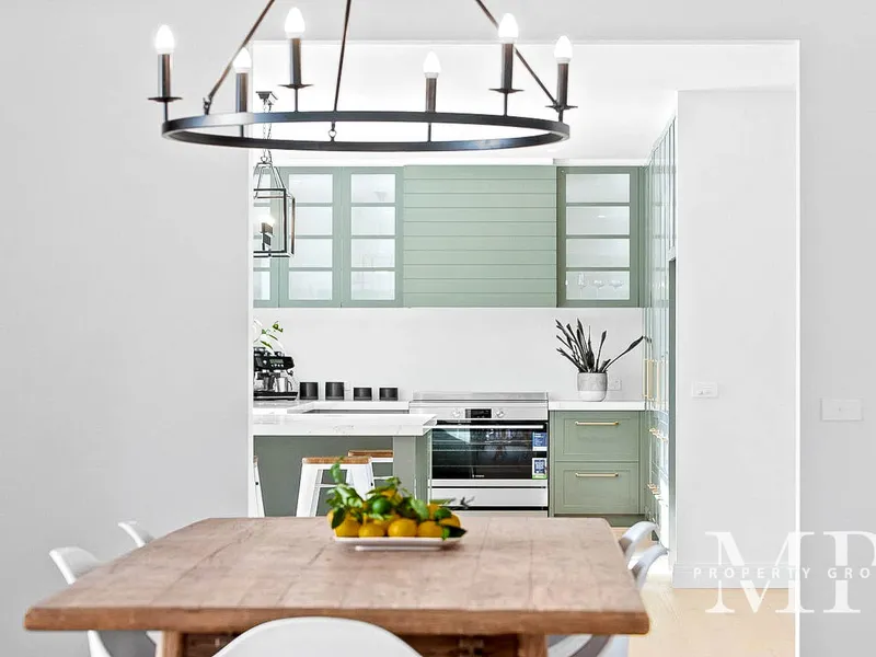 Beyond the grand portico entrance, the home opens into generous living and entertaining spaces designed for both comfort and sophistication. Two expansive living zones, a formal dining room, and a stunning chef's kitchen form the heart of the home. The kitchen features marble-look stone benchtops, premium stainless-steel appliances, bespoke cabinetry, farmhouse sink, and a spacious breakfast bar, ideal for both everyday living and entertaining.