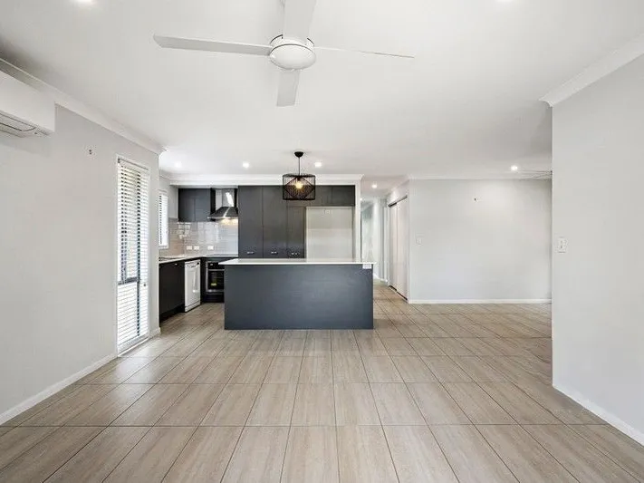 With a stunning kitchen and open plan living area, which opens up to the covered patio and good sized yard. The lounge and dining both have ceiling fans, and a large air conditioner to cover this open plan living area.