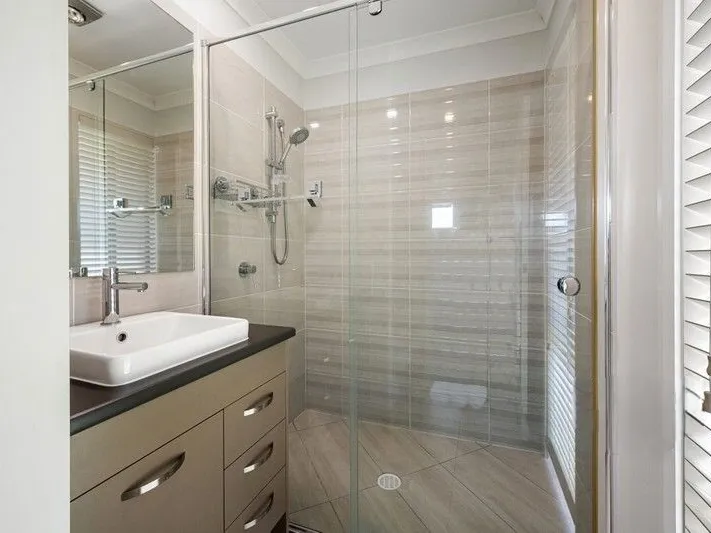The main bedroom includes a walk in robe and well appointed ensuite with plenty of storage and walk in shower. There is also direct access to the covered patio and a ceiling fan for plenty of air flow.