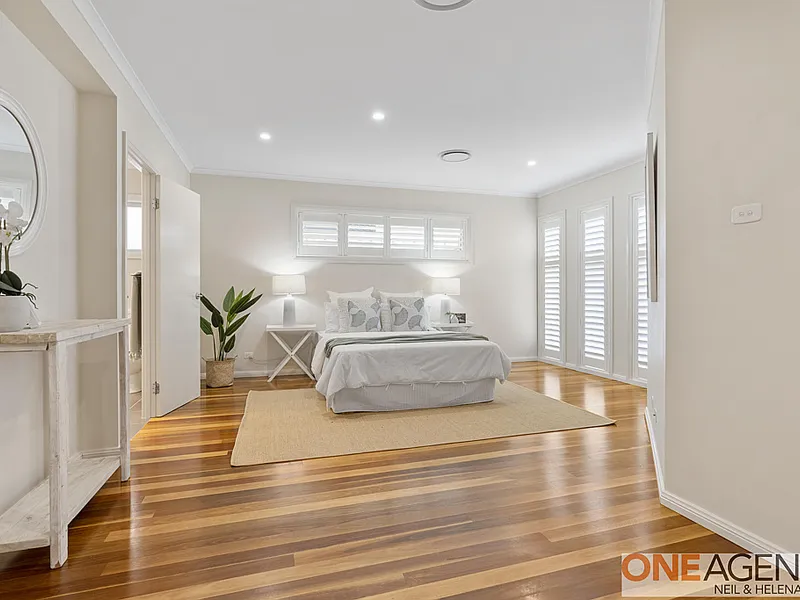 • 4 Light filled bedrooms with built-in wardrobes, walk in wardrobe to the master and double ensuite with his and hers basin