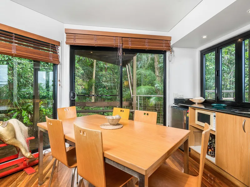 surrounded by widows letting in all of the lovely light and overlooking the regenerated rainforest