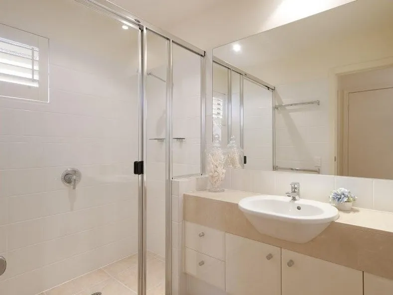 Downstairs is a queen bedroom with built-in robe, a bathroom and a powder room.