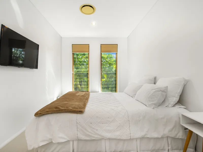 • Second Bedroom (Upstairs): Spacious room with a queen-sized bed, television, and excellent ventilation and natural light.