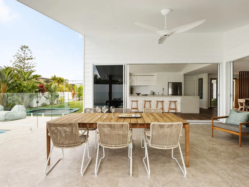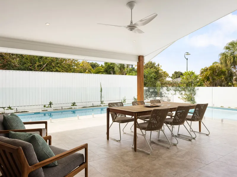 Designed for comfort and entertaining, the home features spacious indoor and outdoor living areas that open to the pool and landscaped gardens, creating a private resort-style setting.