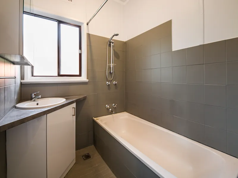The bathroom is neatly presented and practical, offering a shower over bath and vanity. The toilet and laundry are separately appointed, enhancing the home's functionality and supporting the demands of a busy household.