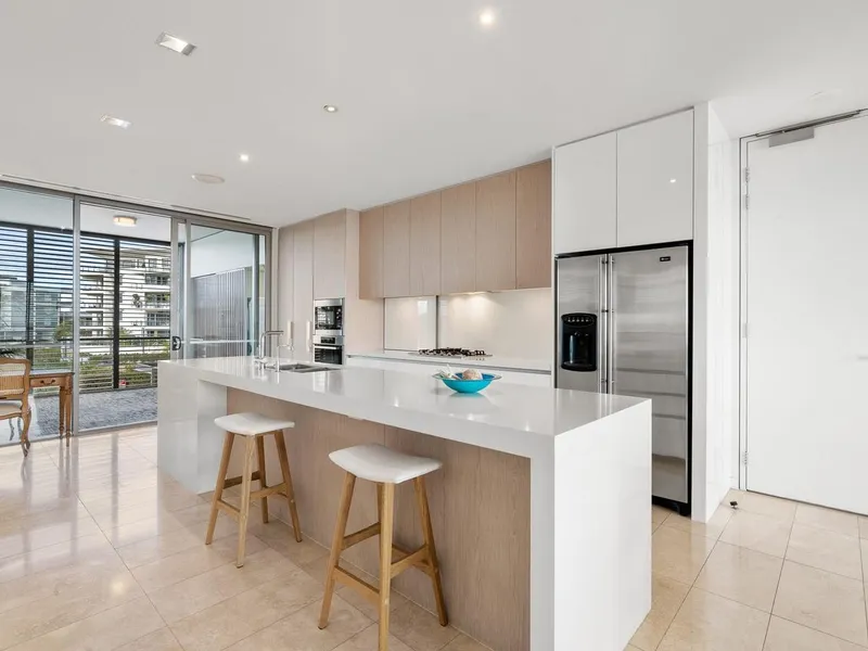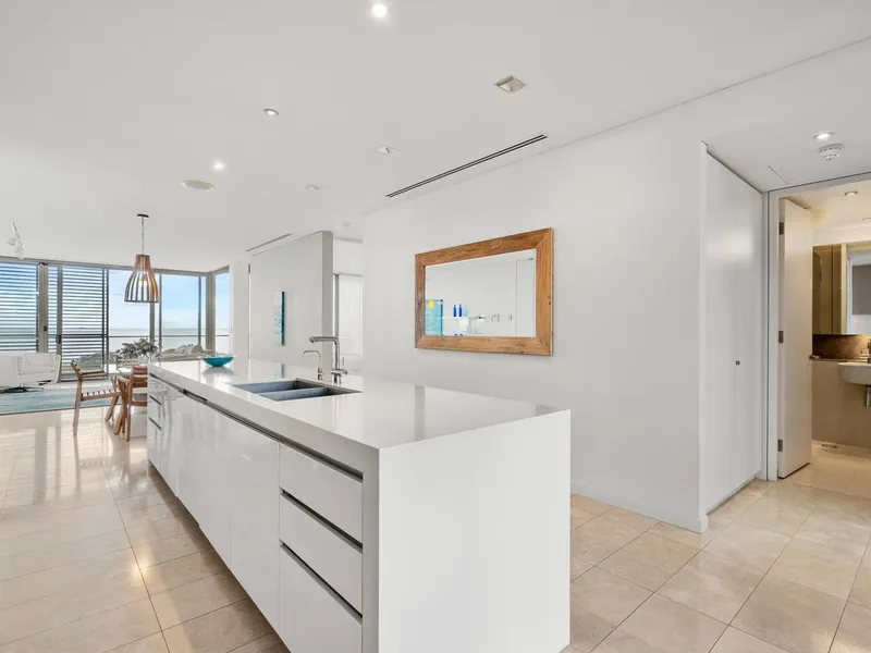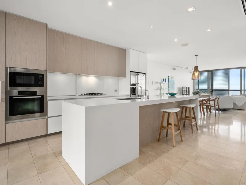 Positioned on level one of the sought-after Island complex, this premium two-bedroom apartment captures sweeping panoramic ocean views from the main living space and master suite. Set right on the coastline, the home offers an exceptional beachside lifestyle with resort-style facilities and direct access to the sand just moments from your door.